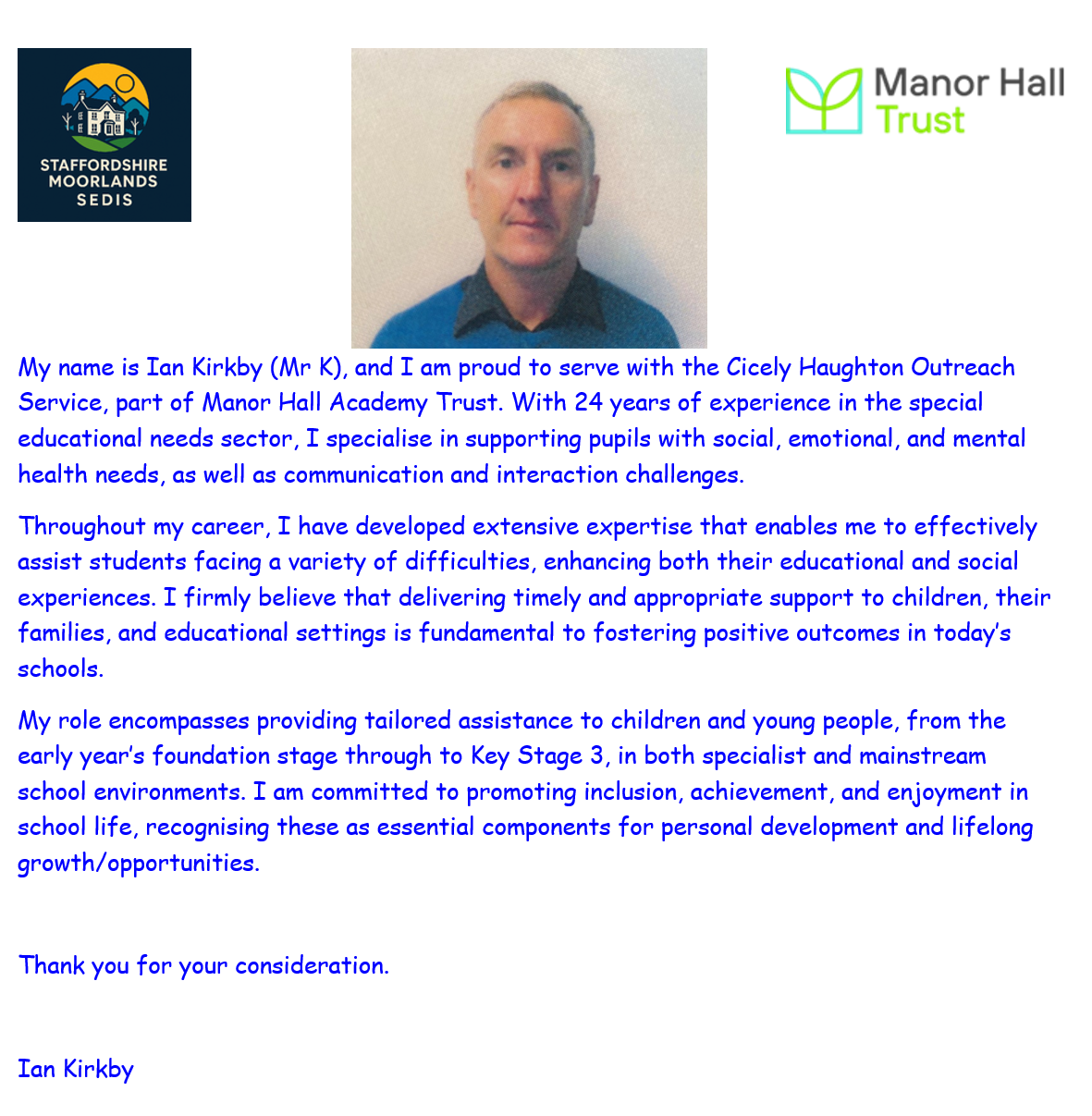 For more information for support from Staffordshire Moorlands SEDIS, Please email the following SEDIS@cicely.manorhall.academy